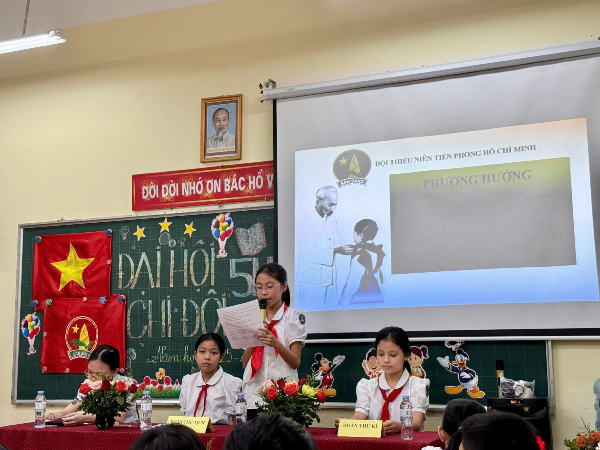 Trong không khí hân hoan đầu năm học mới, thực hiện nhiệm vụ công tác Đội và phong trào thiếu nhi năm học 2025-2026, chi đội 5H do cô giáo Nguyễn Thị Kim Chi chủ nhiệm đã vinh dự được chọn cử tổ chức Đại hội chi đội mẫu, khai màn cho chuỗi hoạt động ý nghĩa của toàn Liên đội.