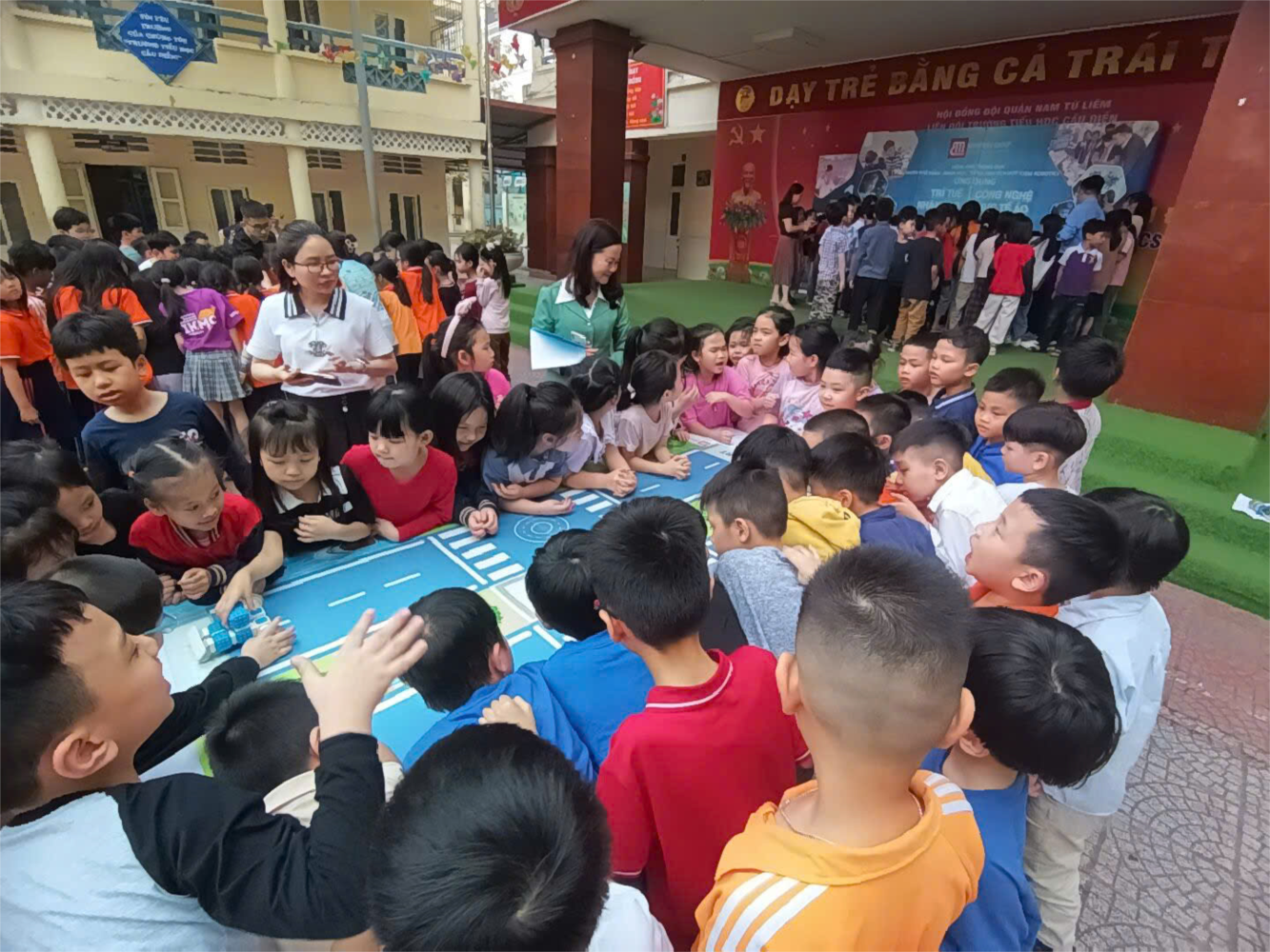 Chiều ngày 27/03/2025, sân trường Tiểu học Cầu Diễn rộn ràng tiếng cười và tràn đầy năng lượng khi các em học sinh được tham gia chương trình trải nghiệm Tiếng Anh STEM Robotics, Tiếng Anh - Khoa học và Tiếng Anh - Toán ứng dụng AI (trí tuệ nhân tạo) và AR (công nghệ thực tế ảo). Đây là một hoạt động bổ ích do nhà trường phối hợp cùng Công ty Cổ phần Công nghệ Bình Minh (BMG) tổ chức.